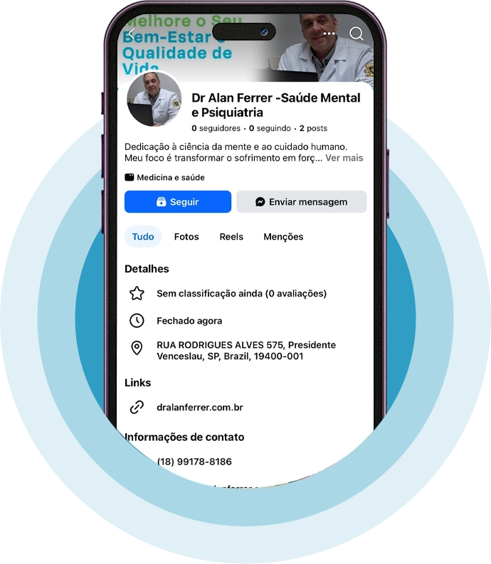 O trabalho do Dr. Alan Ferrer é baseado na escuta ativa, diagnóstico cuidadoso e acompanhamento contínuo, sempre com foco em resultados reais e na evolução do paciente. O atendimento é seguro, sigiloso e comprometido com a promoção da saúde mental de forma ética e acolhedora.